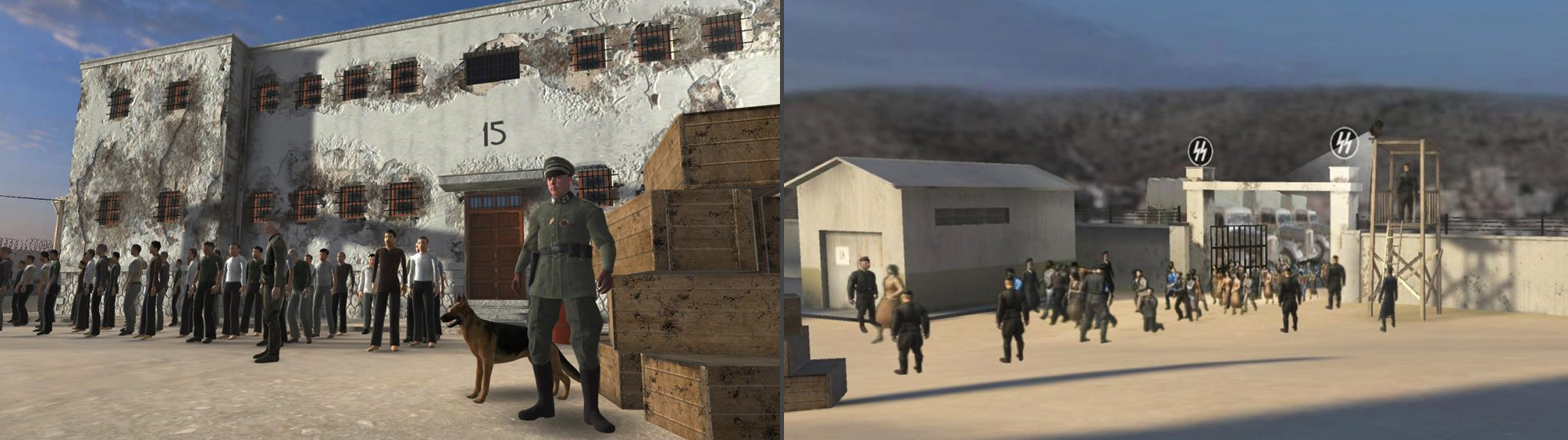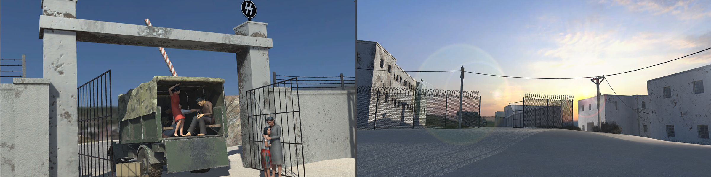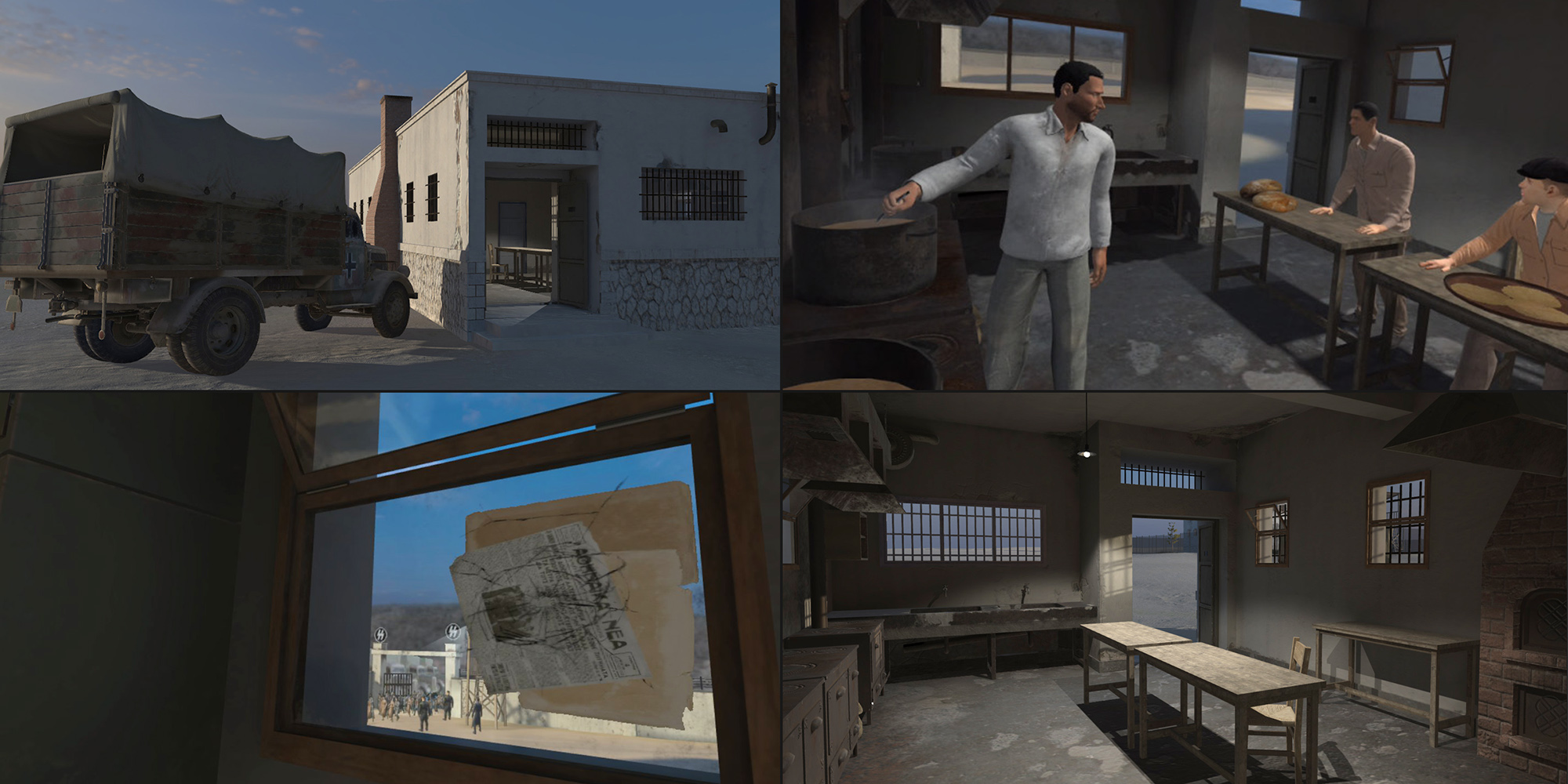 Even in the deserted areas of the camp and scenes where prisoners are forced to stand in silence, sounds are constantly heard: from the hum of the kitchen ventilation and the sounds of the natural environment to the cries of anguish and pain behind the closed doors of the cells. All these sounds compose a complex canvas that had to be reworked in detail to make the VR experience believable and immersive.