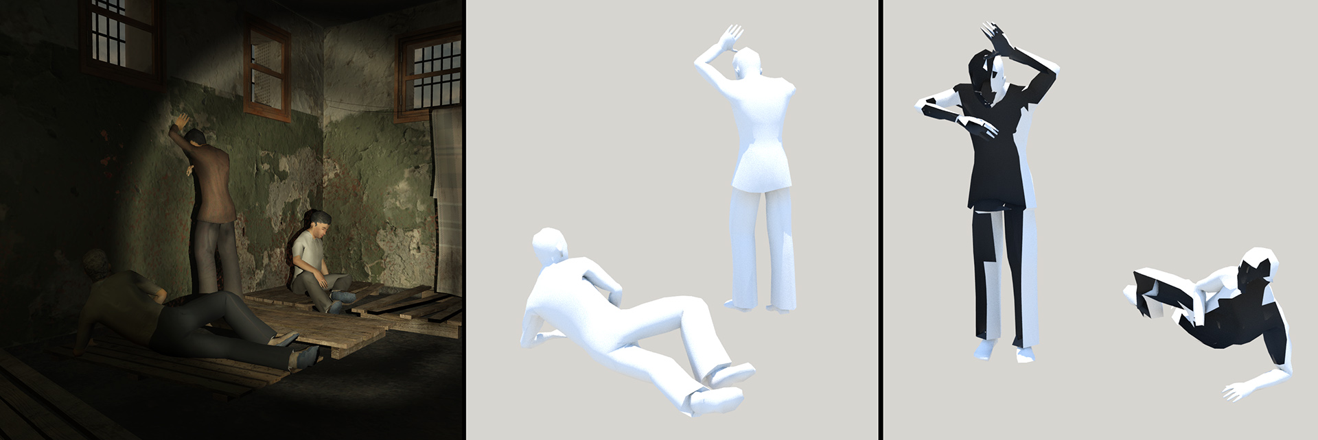 Since the intended audience of the production includes youngsters but also people with varying tolerance levels to violent content, we had to avoid blunt brutality and offending visuals, without however suppressing facts and diminishing the grim atmosphere, inhuman procedures and desperate psyche of the prisoners. Violence had to be “felt” rather than “seen”.