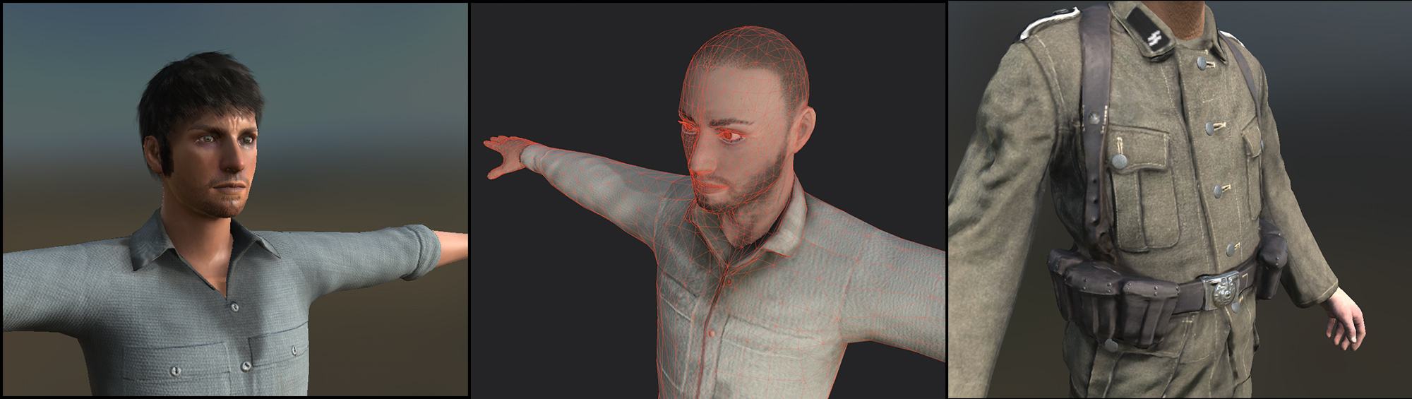 The various characters in the production were modeled in multiple resolutions in terms of the number of polygons, depending on the scene in which they participate and the viewing distance. For texturing, hand-painted images were used based on photographs, archival material and historical data.