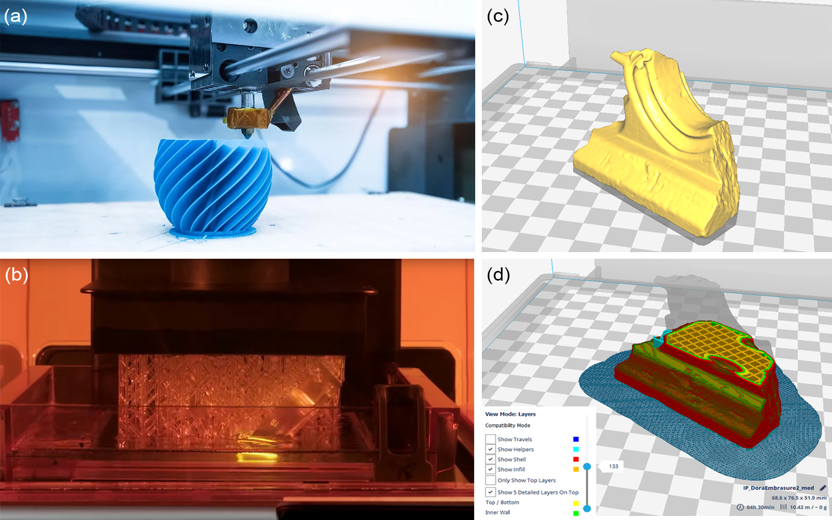 3D printing has revolutionized many aspects of fabrication and prototyping, by allowing the quick preview and testing of parts, the easy fabrication of difficult to build objects as single pieces, and the inexpensive fabrication of objects in small quantities. For this reason, aside from industrial applications, 3D printers have found their way to niche application domains, such as fabrication of surgical implants, dentistry, art and cultural heritage.