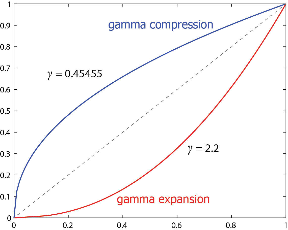 In order to allocate more bits where they count, we perform a non-linear mapping of the linear luminance scale of the raw input before encoding and storing the image data. Then in order to properly display the information, we apply the inverse intensity transformation to the data prior to sending them to the output (display or printed media). This process is called gamma correction and is implemented via two simple transformations, gamma compression and gamma expansion: