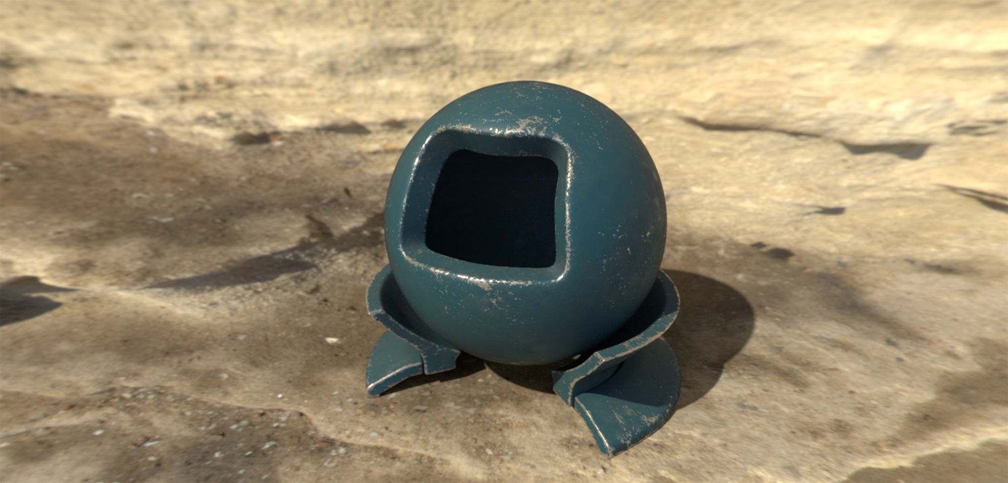 Procedural textures can be driven from geometric features, computed either at runtime or as a pre-processing step, such as curvature and or surface elevation or orientation. In the example of the following figure, multiple procedural textures are blended together using the pre-computed curvature and visibility (ambient occlusion) of the surface as blending factors, in order to achieve a weathering effect on a painted metallic surface.